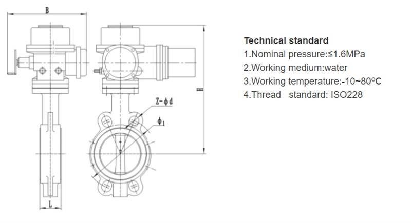 The electric flange butterfly valve uses the electric actuator to input the standard signal, and the electric unit drives the gear turbine worm Angle torque to drive the disc rotation. When the valve is in the fully open position, the thickness of the disc is the only resistance when the medium flows through the valve body, so the pressure drop generated by the valve is small, so it has better flow control characteristics.